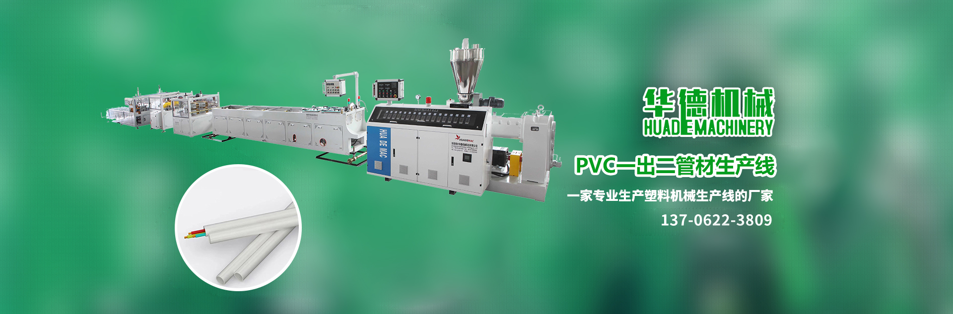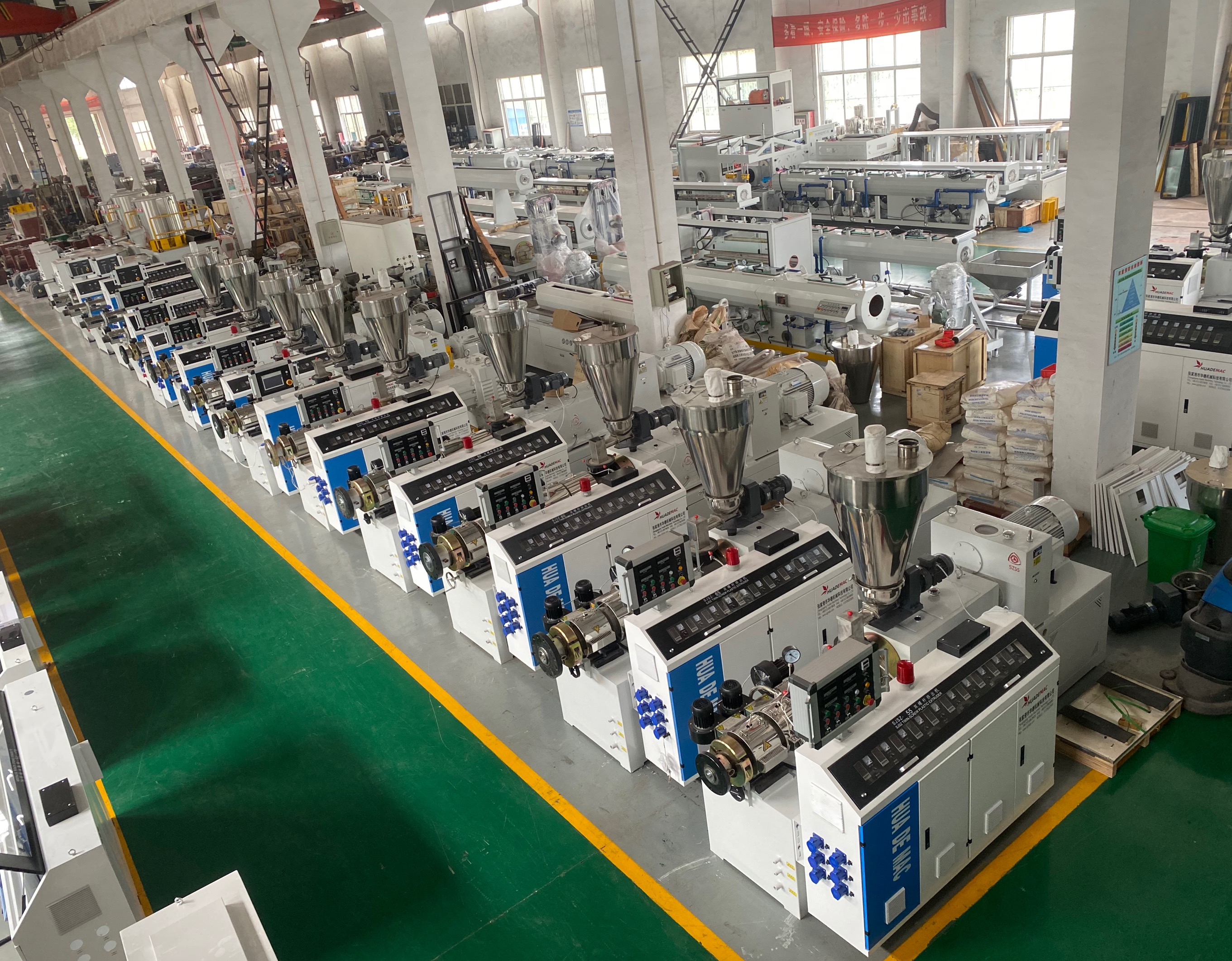 系列單雙螺桿擠出機(jī)、PP-R管材機(jī)組、PVC管材機(jī)組、HDPE管材機(jī)組、PVC各類異型材等成套擠出生產(chǎn)線及干燥機(jī)、上料機(jī)、破碎機(jī)、高速混合機(jī)、牽引機(jī)、磨粉機(jī)等系列塑料機(jī)械